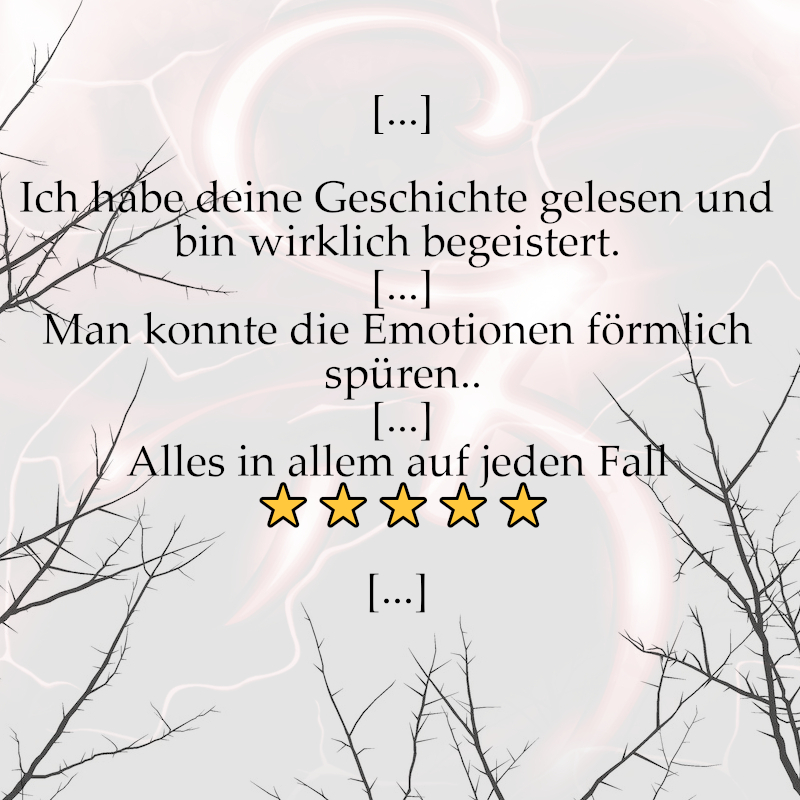 Ich wünsche mir, dass mein Roman mehr als 3 Leute lesen werden. Wie ich das anstelle? Das weiß ich noch nicht, aber ich werde es schaffen. Denn das ist die Geschichte auf jeden Fall wert! Die Angst ist da aber die Hoffnung auch! Ich will mich nicht mehr von diesen Zweifeln irren lassen.